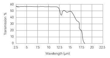 使用VGF生长方法生产的的高纯度GaAs单晶,经过切磨抛后,红外2~12μm波段的透过率可以达到≥55%的水平。产品厚度较厚时(≥3mm),透过率会随着厚度的增加逐渐降低,一般会在51%~55%左右。在实际运用中当红外材料的强度和硬度是产品的关键因素时,GaAs也可用于CO2激光应用,作为ZnSe光学透镜或镜面的替代品。