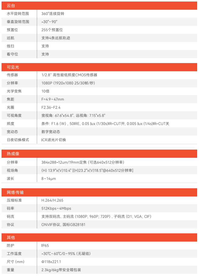 小尺寸轻量化设计,单独球机重量不超过2.5KG